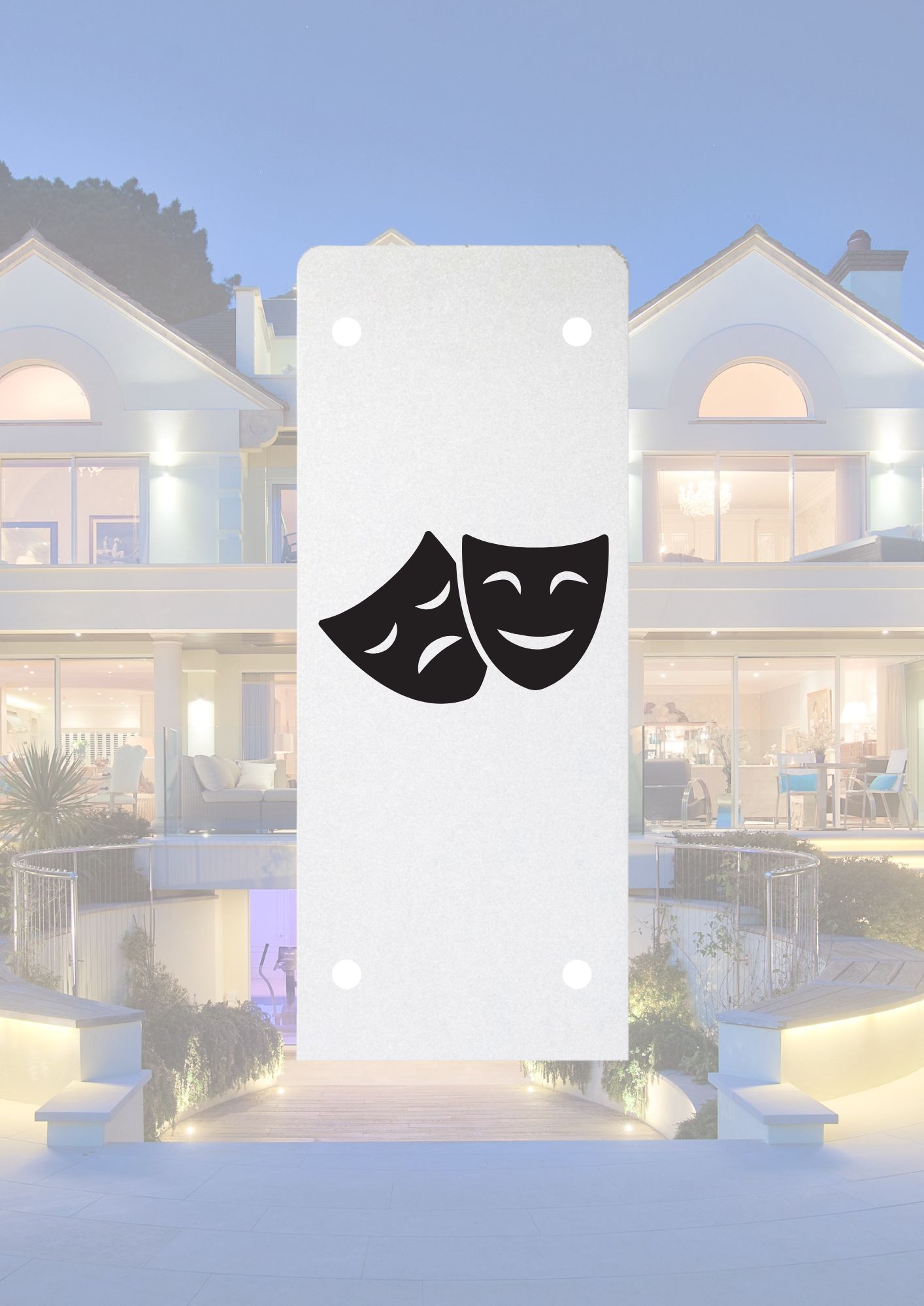 Twin masks of laughter and tears, capturing the drama, mystery, and raw emotion of the theatrical world.